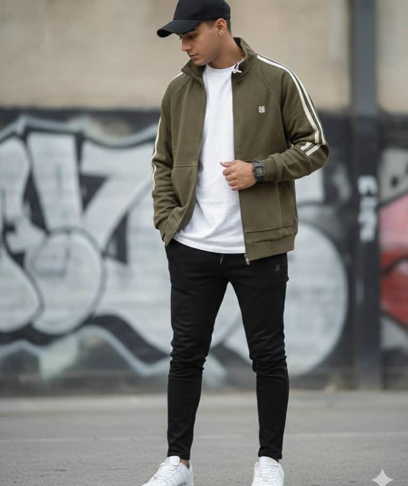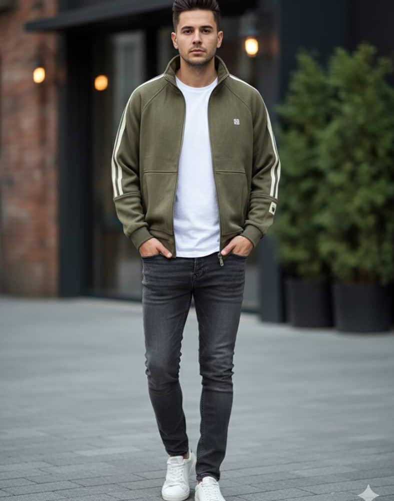پارچه ی طرح کیبریتی جلوه ای خاص و متفاوت به لباس داده و ظاهر آن را از مدل های ساده متمایز کرده است.وجود آستر داخلی نرم نیز گرما و راحتی بیشتری را در فصل پاییز و زمستان فراهم می کند.دارای زیپ سراسری ،یقه ایستاده،دوجیب کاربردی در قسمت جلو و نوارهای دو خط روی آستین ها که ظاهری جوان پسند و ورزشی ایجاد کرده است.
